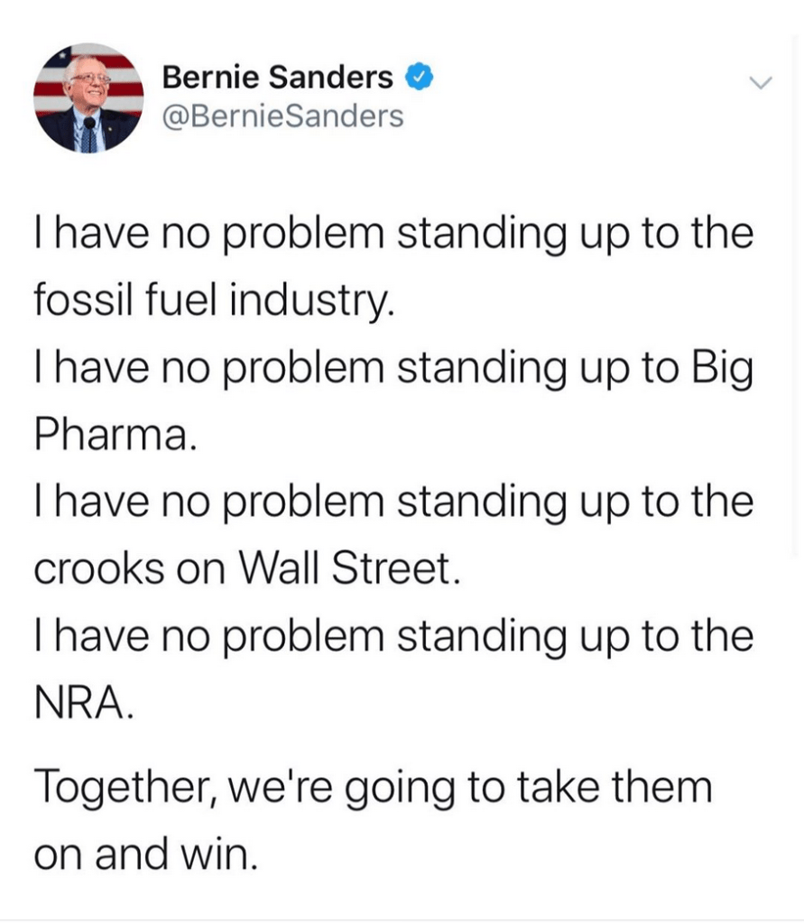 Among Sanders’s favorite targets are banks and other financial institutions, the pharmaceutical industry, health insurance companies, big tech, and military contractors. Again there is no subtlety in his opprobrium: He says that banks and credit card companies are nothing more than loan sharks ripping off Americans. He’s compared insurance and pharmaceutical companies to crooks and even murderers. He wants to use antitrust laws to break up tech giants like Google, Apple, and Facebook.
