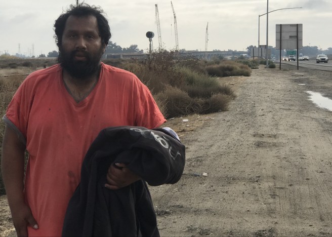 It was the kind of dreary, drizzly morning that in most people triggers the hibernation instinct, the desire to curl up at home with a book, a cup of coffee, a loved one. Instead, Ronaldo was slogging through mud and undergrowth along the side of the highway holding a slapdash bindle as if it was 1930. The ground fog muted his orange shirt; he looked almost spectral amid the washed out colors. Which in a way is appropriate: California has long treated its poor and homeless as less than afterthoughts, like ghosts who occasionally cross the aetheric plane to manifest briefly in real life.