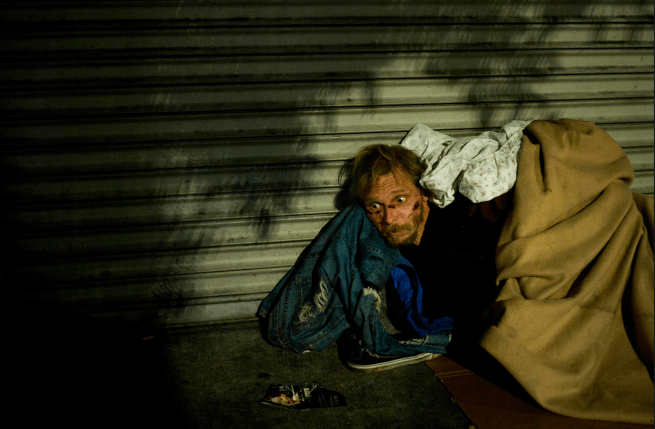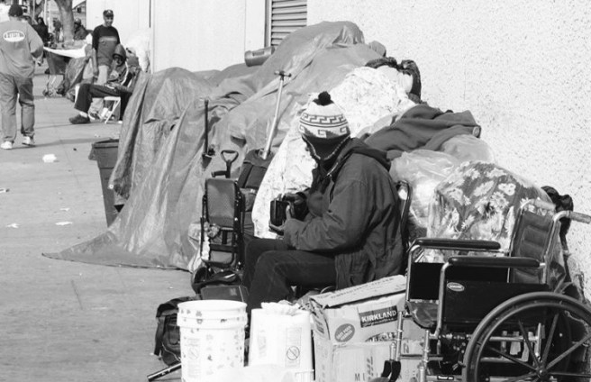 Driving half the length of the state that November day I didn’t cover more than a handful miles at a time without passing a homeless camp, a tent city, a shantytown. People relieved themselves in broad daylight, shamelessly exposed toward the highway as families in cars and minivans passed. Others lay on the hillside shoulders as still as the dead. Given the numbers of homeless people who perish in California every year it’s entirely possible a couple of them were.