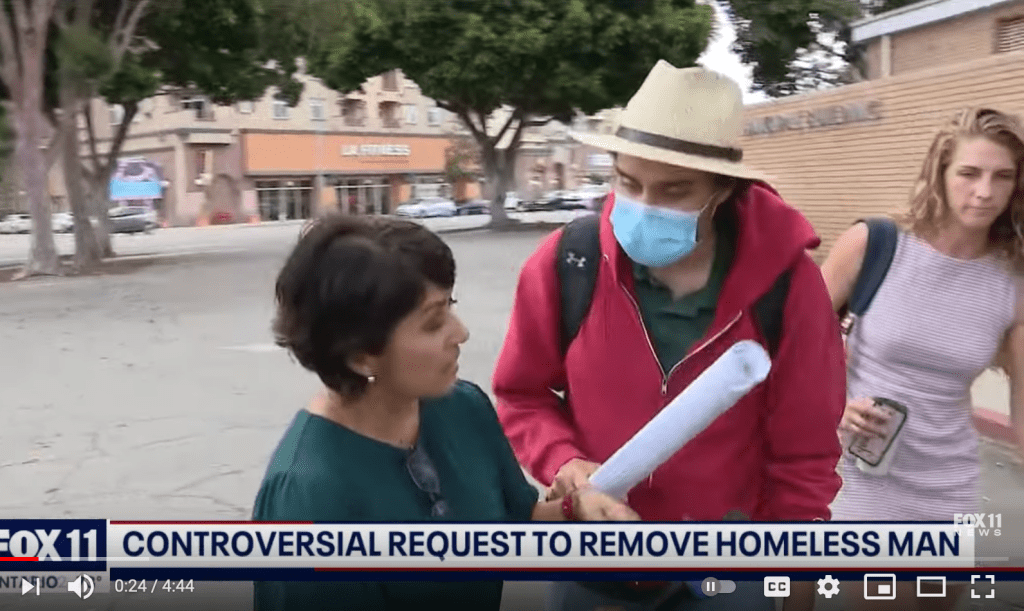 Meanwhile, a homeless person was injured in a shooting in Westchester Park in front of Mr. Bonin’s office on Saturday night — Witnesses, including homeless themselves, live in fear — Mr. Bonin’s staffers caught on camera assaulting a news crew