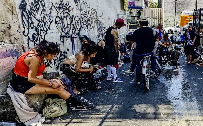 Play “Where’s Waldo?” with the picture above. You can count at least ten crimes in that one scene: Drug sales, public drug use, public intoxication, trespassing, vandalism, graffiti, damage to public property, littering, loitering and theft (note the e-scooter above the second woman from the left). If you think the bicycle the guy in the middle of the picture is sitting on was purchased legally, I’ve got a bullet train in Fresno to sell you.