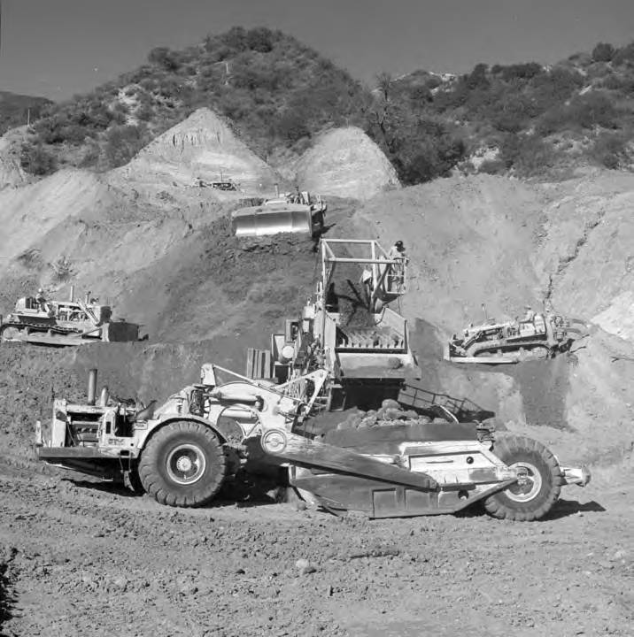 Santa Ynez Reservoir under construction, February 1967. LADWP archive photo.