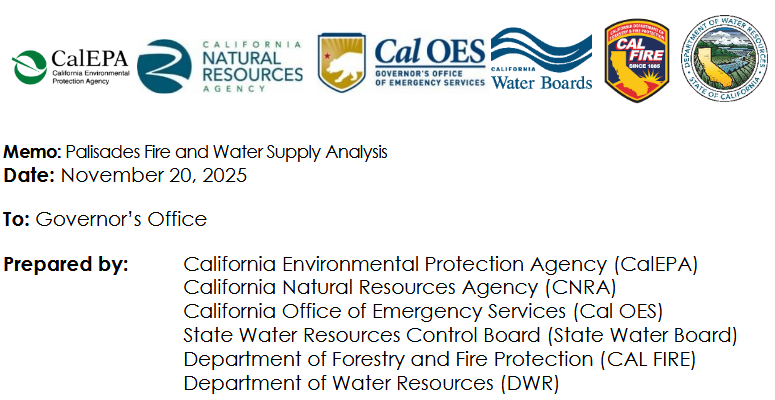 On page 7 of the report the ass-covering kicks into overdrive. The authors conclude that a full reservoir may have added as much as 15% more water flow to the Palisades system. Here’s the money shot: “The state does not have data regarding the precise demand on the system [during the fire] at this time. Without additional data and a modeling effort by LADWP, it is not clear exactly how much time the 15 percent extra flow would have extended water availability.”
