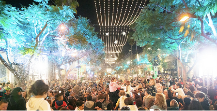 Which brings us to the “Holiday Tree.” The picture at the top of this post is from the official city email announcing the lighting ceremony. The good news is that it at least resembles a Christmas tree (albeit without the star on top — they got rid of that a few years ago, probably because an atheist activist complained it hurt his feelings). During the lighting ceremony there will be carols, and Santa will make an appearance.