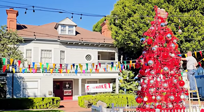 And then there’s this hot mess — a “holiday tree” made out of painted shopping carts in front of the California Heritage Museum in Santa Monica. Because, apparently, homelessness.