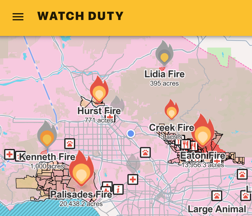 During two hellish weeks, Angelenos were glued to their TVs and to the Watch Duty app, which provided invaluable real time alerts of the fires’ progress, the ignition of new fires, evacuation orders and warnings and other critical information. Dozens of times a day the app’s distinctive whooshing tone sounded and millions of people picked up their phones to get the latest alert. That tone is etched into our collective memory.