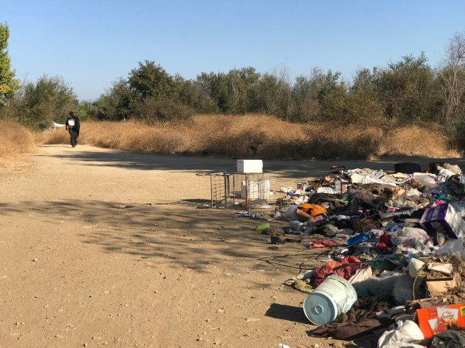 “Extensive” is a relative concept. Even where city workers had cleared campsites they’d left huge amounts of refuse. Indeed, garbage was everywhere, including piles of flammable clothing, wood, and electronic equipment. The stench of excrement hung heavy in the air. In places it was nearly suffocating. The water in Bull Creek was fetid.