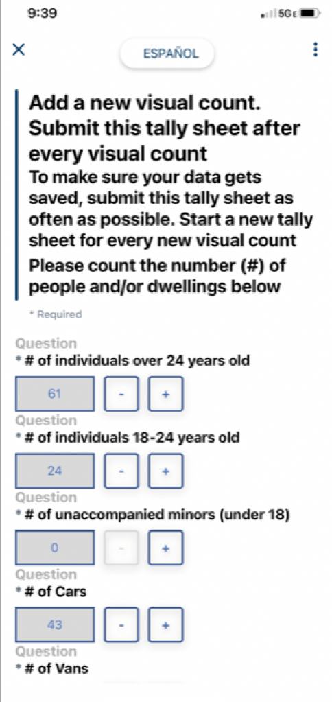 This is 2022, and we live in California. It should not take five people, including two of the LAHSA reps who presumably received training beforehand, several minutes to figure out how to install what amounts to a basic counting app. Akido is a perfect example of technology addressing non-existent problem, in the process creating problems all its own. For example, the app on my iPhone required me to scroll up and down to record counts in different categories. The boxes for homeless individuals and youths (defined as 18-24) were up top while RVs, tents, and makeshift shelters required a scroll. It’s hard enough to keep up when you’re riding in a car going 25 or 30 miles an hour with two other people calling out in rapid staccato, “camper,” “RV,” and “one, two, three — five people!” It was doable on paper, when you just made quick chits. Add in the unnecessary scroll, the small text, and the fact that I often had to hit the tiny little “+” boxes on the screen two or three times with my fat fingers for each count and it became borderline impossible.